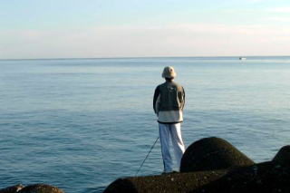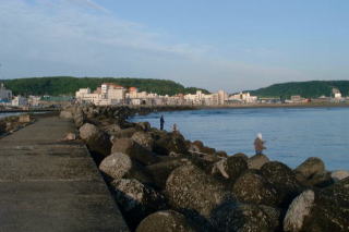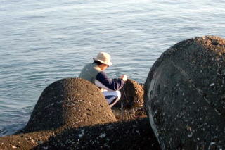 今日は天気がよく、帽子岩をしっかり拝めた。 今日の釣り人の数は10人ちょっと。 全体0本のさみしい結果だが、マスは見ることができた! 新型のリールで気合いのはいるtanさん(左) しかしライントラブルはtanさんの宿命か?(右) 定置は、時化や休みで久しぶりに上げたらしく、 結構入っている様子だった。