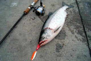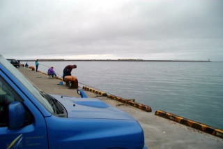 立て続けのヒットで、自分もびっくり周囲もびっくり。 57cmと56cm。 みんなニシン狙いで、マスは私も含め2人だけだったが、 あっという間にみんなマス狙いへ衣替え まさに銀ピカ! みんなの注目の的になってちょっと恥ずかしかった。 第4埠頭の沖堤ではまだ工事が続いているようだ。