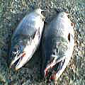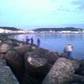 今日はカメラ付き携帯での撮影。 意外といい写真が撮れてびっくりだが、 今度からデジカメ忘れないよ。 左がtanさん、右がキッシーのアキアジ。 ダブルヒットのカップルでなんとなくめでたい。 tanさんは釣れて余裕の一服。 リンさんはさみしく?ルアーを投げ続ける・・・。 リベンジはいつだ。