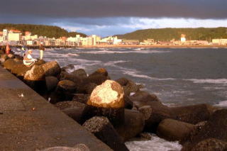 この高波が釣り人を容赦なく叩きつける。 これでは釣れるはずがない。 川と海に虹が架かった。 「がむしゃらに釣るのではなく夢ある釣りをしようよ」 そう訴えかけているようだった。