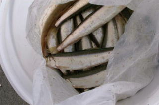 第4埠頭というよりは第5埠頭になる。 オイルフェンスの裏側でチカ釣り。 アキアジ釣れないときは柔軟に釣りをしよう。 あっという間にバケツ半分。 おいしくいただきます。