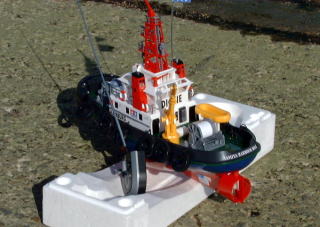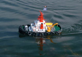 今日は遠路はるばるメガ弟さんがラジコン釣りを披露! 現場に着くと釣り人はおらず、魚の姿もない。 急遽、進水式に変更! メガ弟さんの愛艇「ムサイ」。 放水砲1門を備えており、武装も強力だ。 小気味いい高機動な旋回性能を見せつける「ムサイ」。 マストには大漁旗が! しかし、釣り竿を取り付けるとバランスが悪くなり転覆! ルアーで回収となった。 これぞまさに「ラジ釣り」か!?