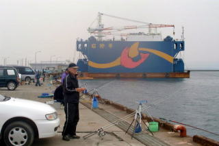 強めの風が吹き、釣りづらい。 アタリが分かりづらいが、 そもそもアタリがないので関係ないか・・・。 港のど真ん中超巨大な台船が入港中。 この台船の周りも上も立ち入り禁止となっているのだが、 釣り人が結構乗っていた。 カレイがほとんど釣れてない。 チカは釣れているのだが・・・。