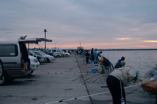 びっしり埋まった第4埠頭。 しかし、釣れるところは決まっているのだ。 知床の方から朝日がこぼれる。 朝の第1ラウンド第4埠頭はtanさん圧倒的! 第2ラウンド帽子岩でキッシー60cmのオスゲット!