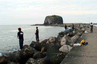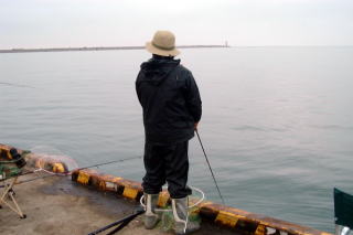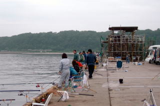 向こうの方でエサ釣りがにぎわう。