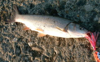 全体30人ほどでさみしくなったが、 8,9本は釣れていたであろうか。 サケルアーに食らいついたウグイ。 tanさんの釣ったマスより大きい? 2本も釣って「ウグイマスター」の称号を得た!