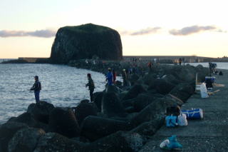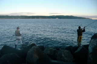 夕方はあまり釣れず、釣り人たちには輝きがない。