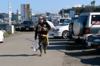 汗かきながらアキアジを運ぶその顔には笑顔が・・・。
