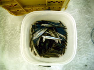 昨夜はかなりの吹雪だったので釣り人は少ない。 駐車場もガラガラだった。 今日の釣りはかなりムラがある。 置き竿にしている時間が長くなる。 なんとか3ケタ釣りか。 お昼から用事があったために12時前に納竿。