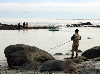 11日はまずまず良かったフンベに朝駆け! 何と20本程度釣れたということだ。 沖の磯へボートで行くことができる。 人気のポイントで、今日は30人ぐらい渡っていた。 朝一発に群れが入ってドッと釣れたが、 それが続かないのである。早朝10本程度か。 網を上げた方が釣果が悪いフンベだった・・・。 じゃあ、網走帽子岩は? 夕方2本だけのヒドイ惨状だった・・・。