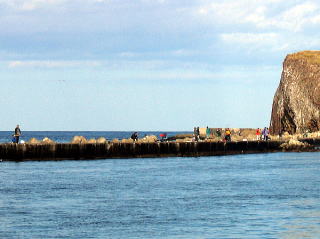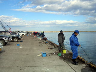お昼頃、とっちさんたちが頑張っている埠頭へ。 もちろんとっちさんたちは早朝からの釣り。 ポツンポツンとサケが釣れていた。 この時点でとっちさんは1本、とっち奥さんとレガオさんはボウズ。 チカは場所が悪かったためかあまり釣れていない。 私も少し竿を貸してもらったが、食ってくれないのだ。 と、思いきや、とっちさんがサケをゲット。 本日2本目のサケにはシーライスがたくさん付いていた!? 本日の帽子岩は密漁者がほとんど。 ダメダメです・・・。