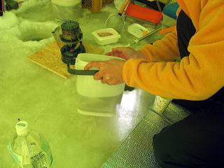 ワカサギ釣りにはもったいないくらいの天気。 これまで天気が悪いときばっかりだったから・・・。 朝から入れ食いモードが延々と続くのだ。 水を入れ替え中にワカサギがこぼれ落ちちゃった・・・。 メガ弟さんのカワガレイを見て、とっちさんがうらやましがる。 その後、待望のカワガレイをとっちさんは釣り上げて喜んでいた。