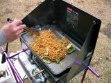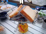 パーティーサイトは広々! しかし、初めての設営に苦労した・・・。 ワカサギテントのように10秒ぐらいで建てられないものか。 夕食はとっちさん大活躍! スモークに芋子汁だ! 朝食はメガ弟さんの焼きそばとトーストで。 初めてのオートキャンプは食べてばかり・・・。 しかし楽しかったです。