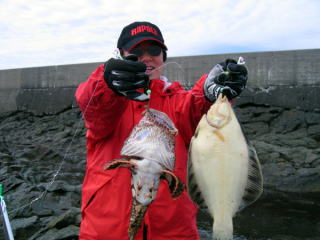 うねりがあって波をたまに被るが、 天気も悪いわけでなくいい感じの釣りになった。 今日は良型が多く釣れる。写真は今日1番のクロガシラ。 寒かったおかげでカレイは遅れているが、そのおかげか? とっちさんの奥さんも大物連発。 マカジカがデカデカ・・・。 3人の釣果がこれ。 この時期にしては数は少ないが、良型揃いだ。