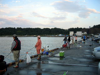 まだ波の残る海に出航する第5埠頭の漁船群。 そのたくましい様子はとてもかっこいいものだった。 穏やかな第5埠頭にはウグイが多く集まった? ウグイが釣れる度に釣り人のロッドがちょこんと曲がる・・・。
