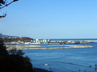秋のこまば木の広場に潜入、黄葉が見事だ。 意外と緑色の葉も多く残されている。 赤系のエゾヤマザクラはすでに散っていた。 イタヤカエデの黄葉がちょうど見頃だ。 風が吹く度に頭上からカサカサと音が聞こえる。 秋ならではの寂しい音色だ。 もちろん足下も落ち葉の絨毯になっていた。 足を動かす度に、これもカサカサと音を鳴らす。 木の広場から第4,第5埠頭を臨む。 手前は工事中の港。ほぼ形が出来上がっている。