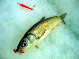 とっちさんのニューテント、小川ノースガード9。 とっちさんのテントを紹介するのはこれで3回目か。 3m四方の居住性は、確かに抜群。 女満別会場の方が釣れているということで、 呼人会場は閑散としている。 3月ということもあるだろうけど。 腕を上げたとっちさん。 だけど氷の層の中に遺棄された軍手を発見。 仕掛けがたまに引っかかり、苦戦。 大物ウグイをとっち奥さんがゲット。 こんなふうに撮ると、ウグイもかっこいい。 外道も大事にしなくちゃダメよ。