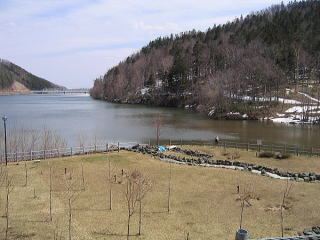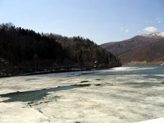 まだ湖面の氷は全て溶けていない。