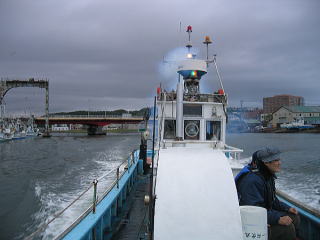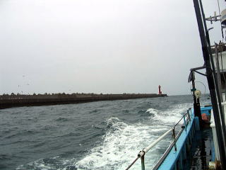 船頭さんは波が高くなったらすぐ引き上げようと、