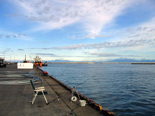 着いたときにはたくさん人がいた第5埠頭。 第4埠頭が閉鎖中だしね。 だけど底引き船が帰ってくるということで撤収。 底引き船到着! 海の男たちの仕事はキビキビしていて、 見ていてとても格好良く感じる。 もちろんEさんの釣り姿も格好いい! とっち奥さんのマスゲットが殊勲賞。 写真撮るの忘れた! ゴメンナリ。