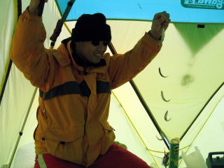 イノケンさんは2度目のワカサギ釣行だというのに