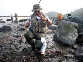 レガオさん、見える群れを狙ってウキルアーでヒット!