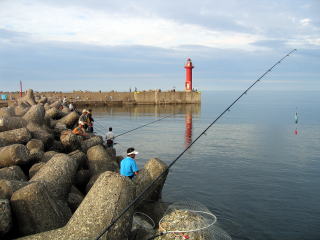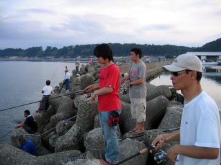 やはり、それとなく混んでいる鱒浦漁港の夕まずめ。 何てったってお盆ですから。 だけど釣れてないよー! 今回の夕まずめ釣行は賑やかだった。 とっちさん、レガオさん、シーバスさんカップル、メガ弟さんも。 マスたちは静かだったけど・・・。 そんな厳しい中、シーバスさんがいい型のマスをゲット。 なんだかいつも私たちの前で釣るんだけど・・・。 ちょっとジェラシー・・・じゃなくてさすが!