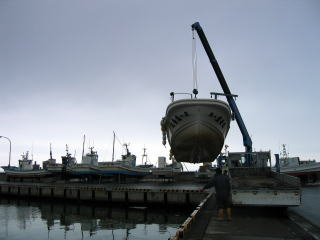 冬ごもりしていた船を港へ下ろす作業を今年も見た。