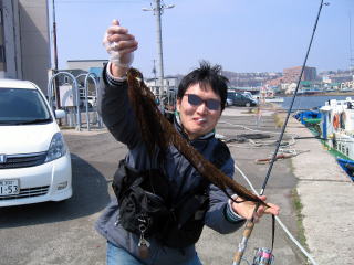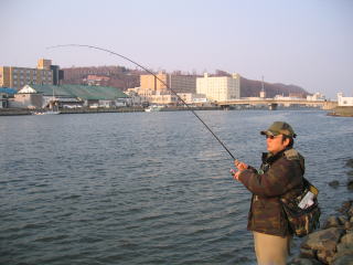 しっかり口でくわえたので釣りらしくなった。