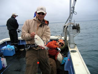 メガホッケが釣れてうれしそう。