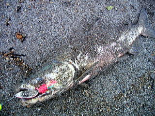 多く釣れていない中での幸運なヒット。 砂まみれだがれっきとしたアキアジ。 リリースしようとしたらおっちゃんに貰われていった。 次はカラフトマス。 まだまだなかなかの銀ピカです。 そんなに釣れていないので人との隙間ができてきた。 多くは河口周辺に行っているのだが・・・。 ということでお巡りさん登場。 河川内はダメだし、 hikkakeもあぶないからやめてほしい。 メガ弟さんにヒット。 釣れない時間帯にお見事。 カラフトマスをゲットできた。