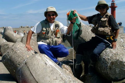 場所を移動し、網走鱒浦漁港。おいおい釣れてるよ。