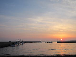 朝焼けを眺めつつ、船に乗る準備を進める。