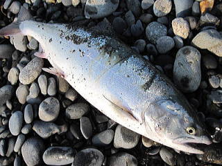 波打ち際近くでヒット。