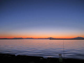 数日前は好釣だったというので車中泊。 朝焼けを見ながら期待して準備。 知床方面がきれいだなあ。 薄暗い中、Eさんが浜一でサケゲット。 今日もひょっとして釣れる日なのか、 と思ったらその後急速に釣れなくなった。 全体もそんなに釣れない中、結局夕暮れ・・・。 やっぱり丸一日滞在してしまった。 明日の朝まずめに期待してもう一泊!