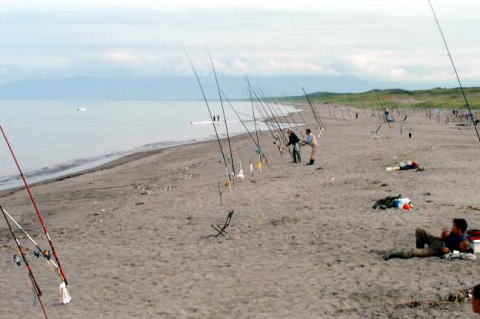 全体が少ない中でのラッキーゲット。もちろん今期初のアキアジ! しかも79cmの型物で、キッシーうれしい!! 止別川はブッコミ釣りで大賑わい。いいなあ。
