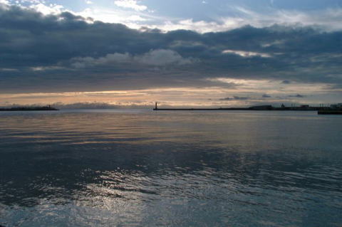 この間の台風の影響でまだ濁りが取れない網走川。 今日の朝は雲と光と水のコントラストが素晴らしい。