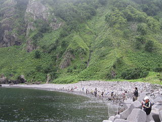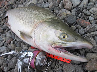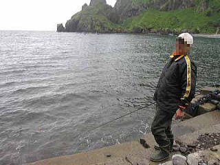 船渡しで知床の秘境に突入! 第1ポイントの上陸断念で第2ポイントへ。 上陸が遅れ、好ポイントは残されてない。 知床なのにテトラの上か・・・。 バラシ多発の後、なんとかゲット。 その後2本を浮きフカセでゲット。 tanさんも1本ゲットしていたが、 帰る時刻が近づいてきた頃に再びヒット。 しかし残念ながらバラシ。