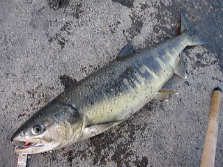 まだまだサンマが釣れているようで嬉しい。 餌調達してから早速ルアーキャスト開始。 寒い時期特有の食い上げのアタリ。 ずいぶん待ってからヒット。 立派なブナだったのでリリース。 続けてまた食いあげるようなアタリ。 うまくあわせてゲット。 ブナなのにキープ、鮭フレークだ。 またまた続けてヒット。 今度はまずまずの魚体だった。 この日は午前中で釣り終了。