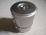 155gと軽量なので移動の多いアウトドアに適していますが、もちろんキャンプでもサッと手軽に使えるのでいいいですね。ポットとカップに分かれますので、スープが飲みたくなるような組み合わせ。お湯を沸かしてカップラーメン、そしてお茶を楽しむなどもOK。チタンなのでカップに口をつけてもアルミみたいにアッチッチとならないのもグッドでしょう。
