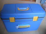釣り用の50Lクーラーボックスです。釣具メーカーの物は作りがしっかりしていますね。ふたが2分割でき、魚で汚れても洗うのが大変楽です。